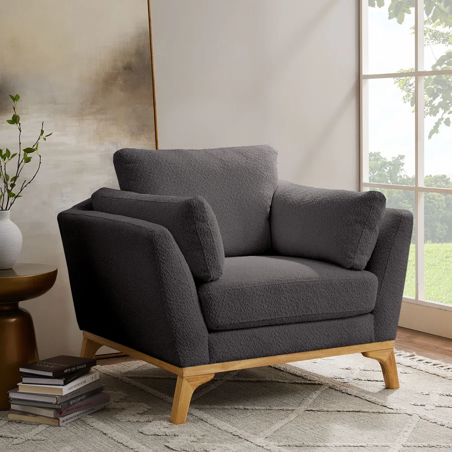 كنبة استرخاء بتصميم عصري وجذاب، مصنوعة من خشب الزان ومغطاة بقماش بوكلية الجذاب. تتميز الأريكة بوسادة مبطنة بالإسفنج لتوفير الراحة والدعم خلال الجلوس، كما تأتي بعدة الوان من اختيارك لتناسب احتياجات المساحة المتاحة .