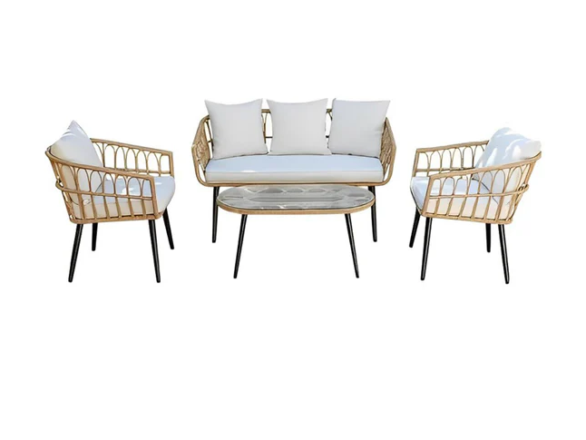 جلسات رتان خارجية مصممة لتجمع بين الراحة والجمال، مقاومة للعوامل الجوية ومثالية للحدائق والمساحات المفتوحة .
