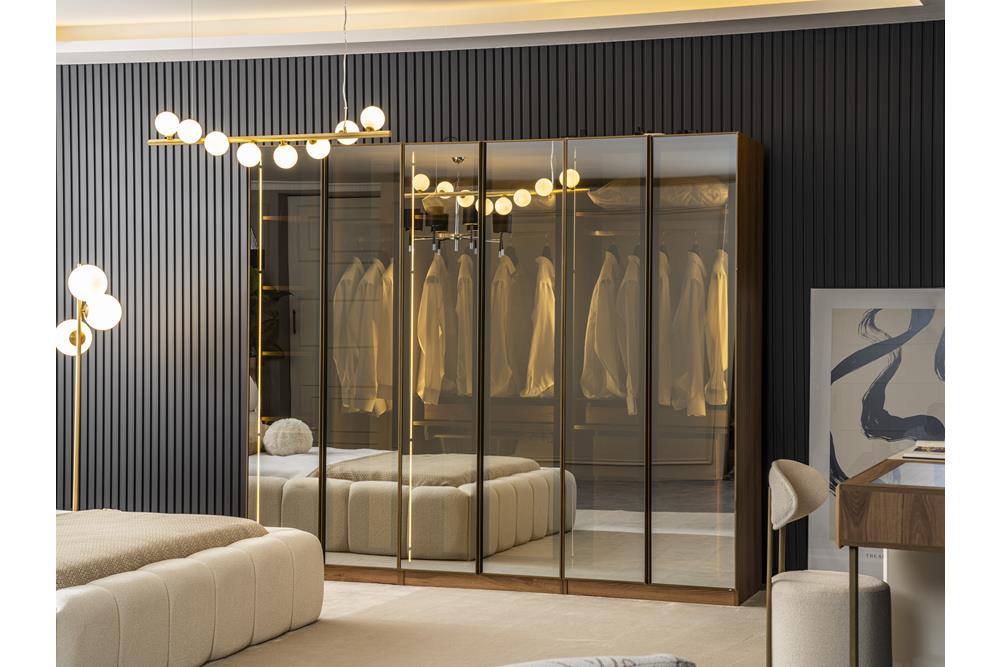 دولاب عرض 250سم *ارتفاع 240سم * عمق 60سم عدد 6دلفة ((4دلفة خشب +2دلفة الومنيوم +زجاج فامية)).