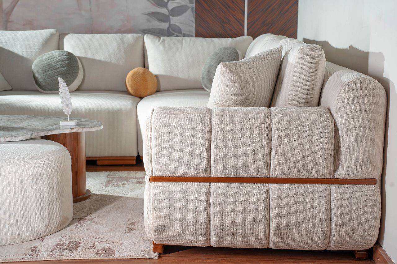 الخامة :خشب زان أحمر – قماش كتان مستورد وتر بروف (ضد الأتساخ  – اسفنج عالي الكثافة )
