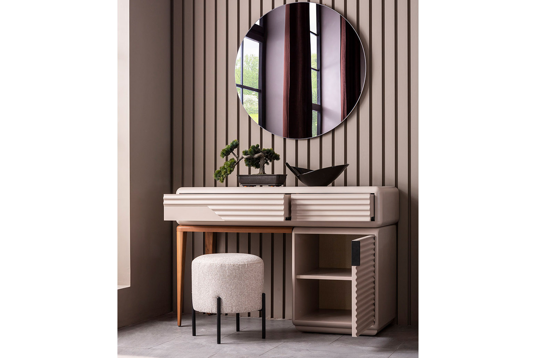 كرسي تسريحة مصنع من الخشب الطبيعى والسفنج السوفت مما يعطى مزيجا من الراحة والديكور .