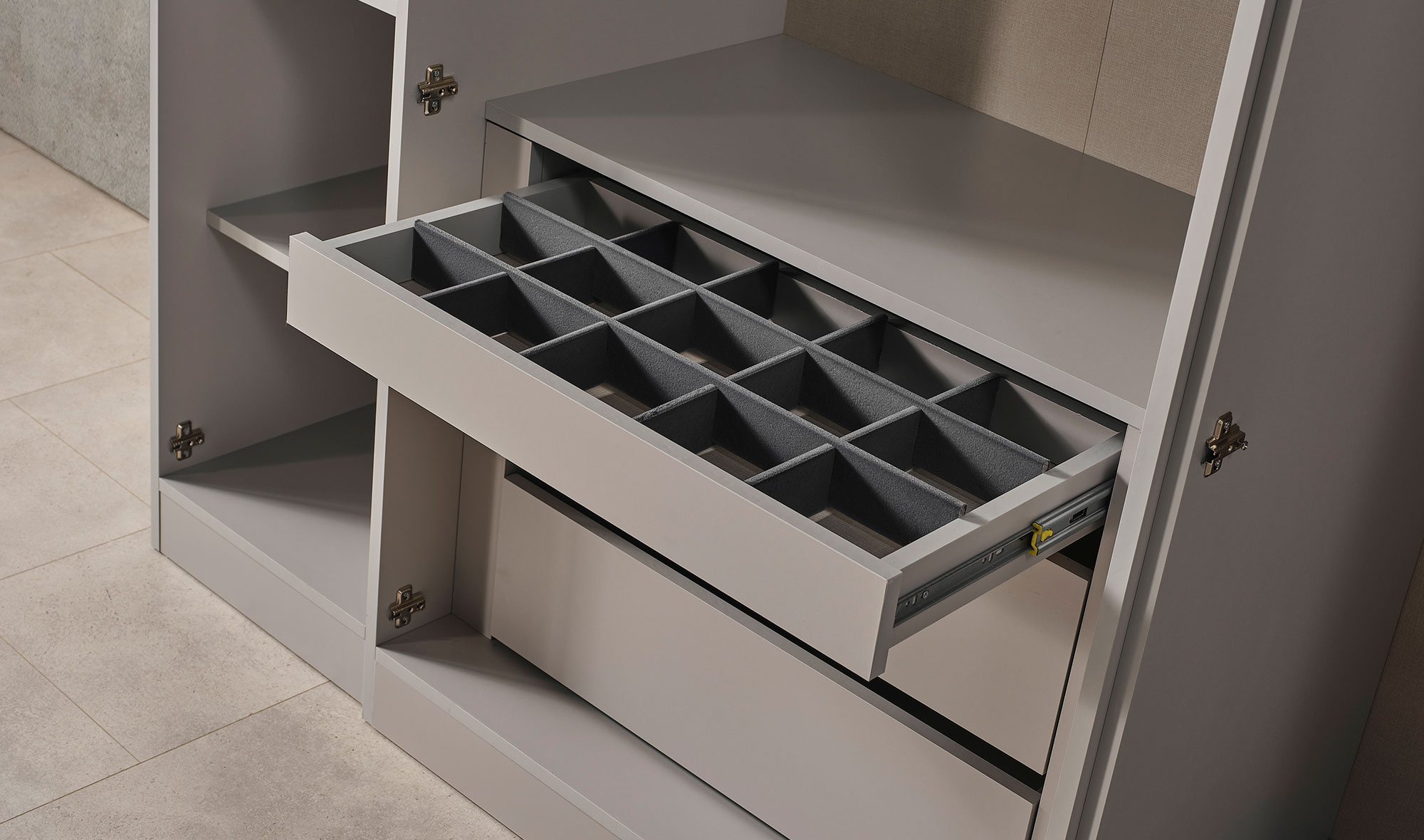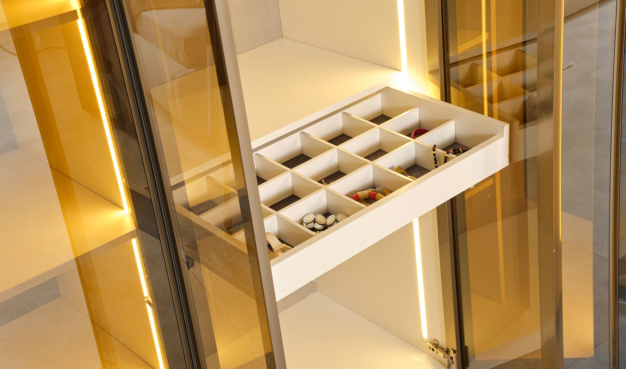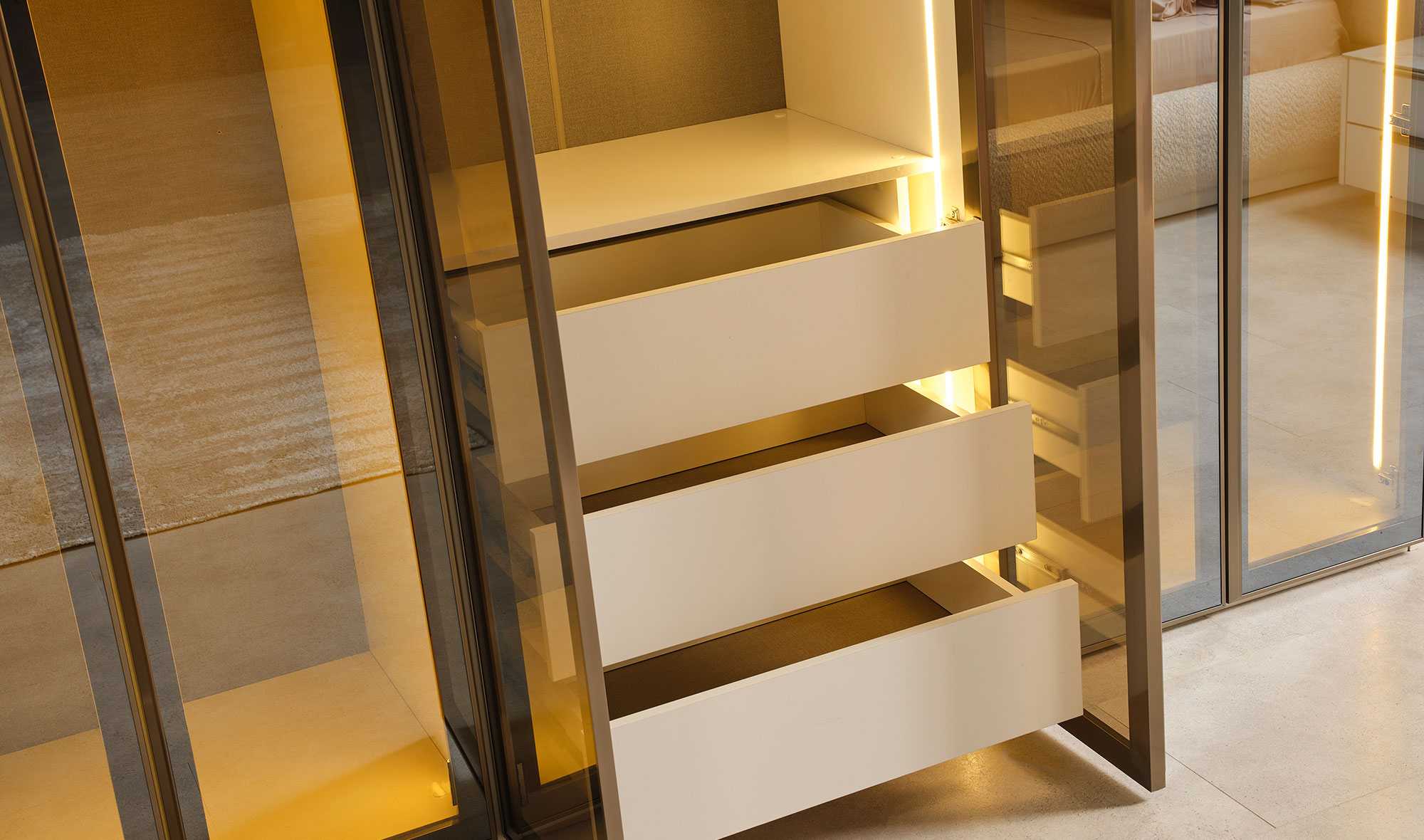 - أرفف وأدراج: لتنظيم الملابس والإكسسوارات المختلفة.