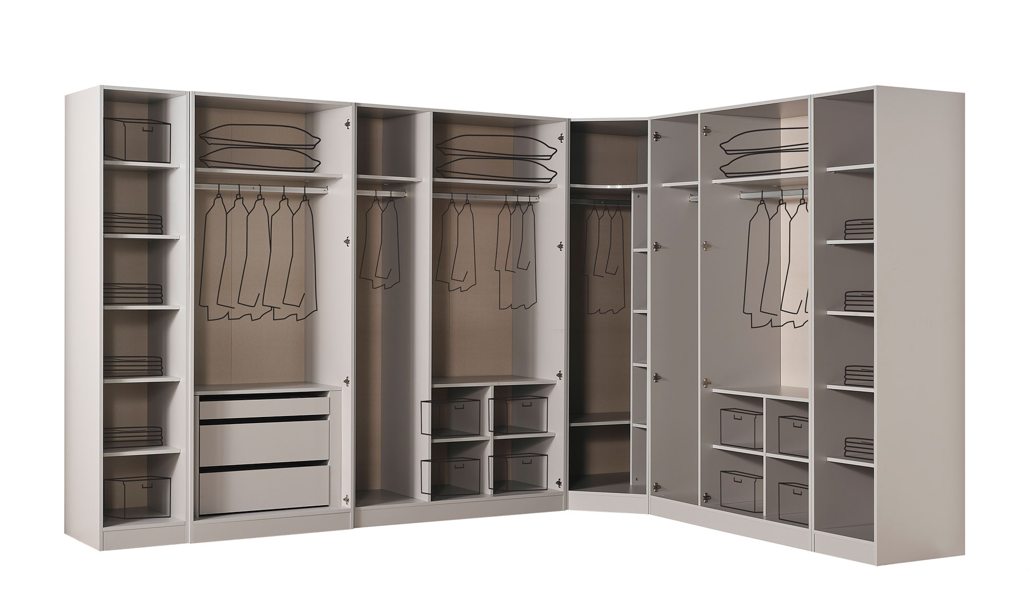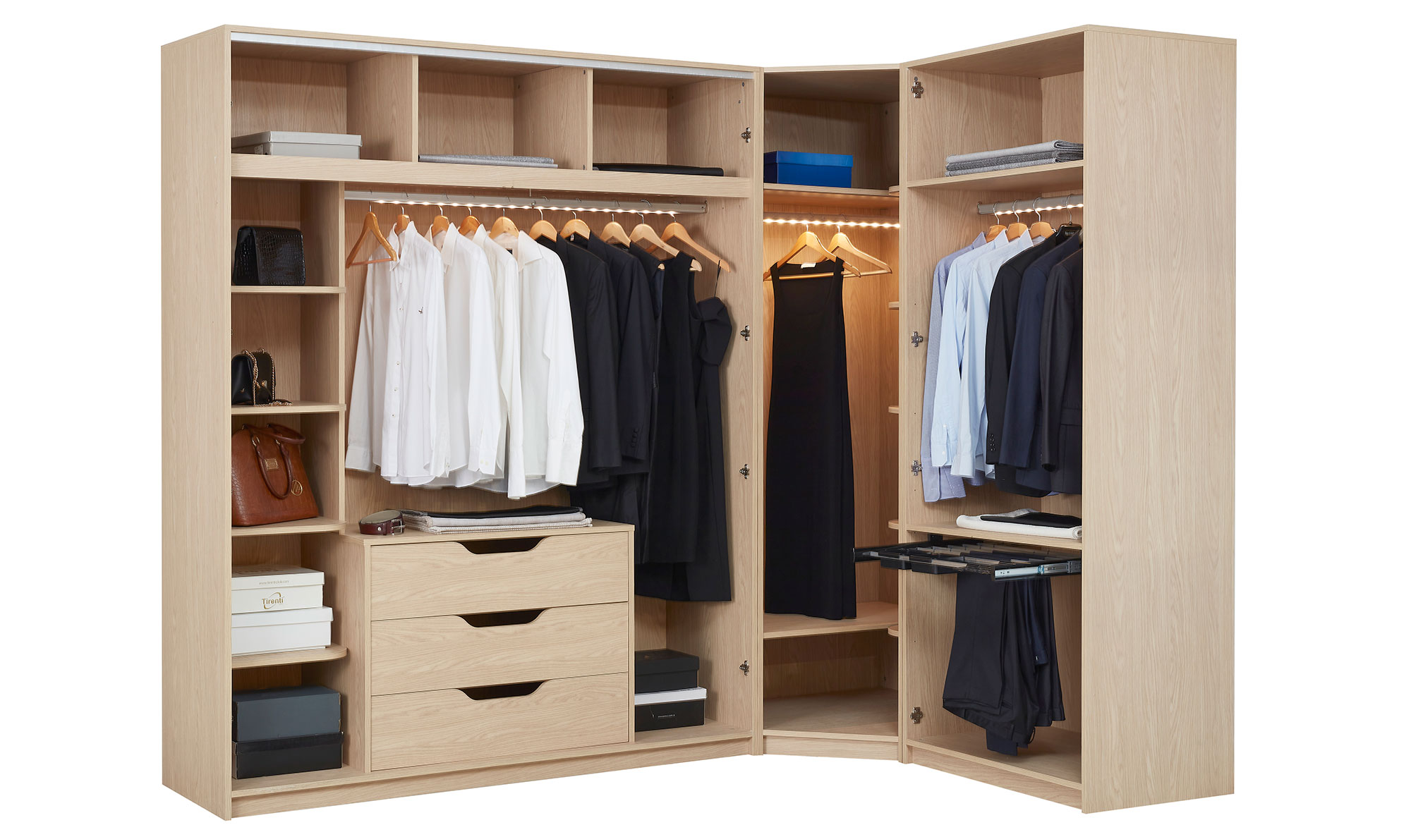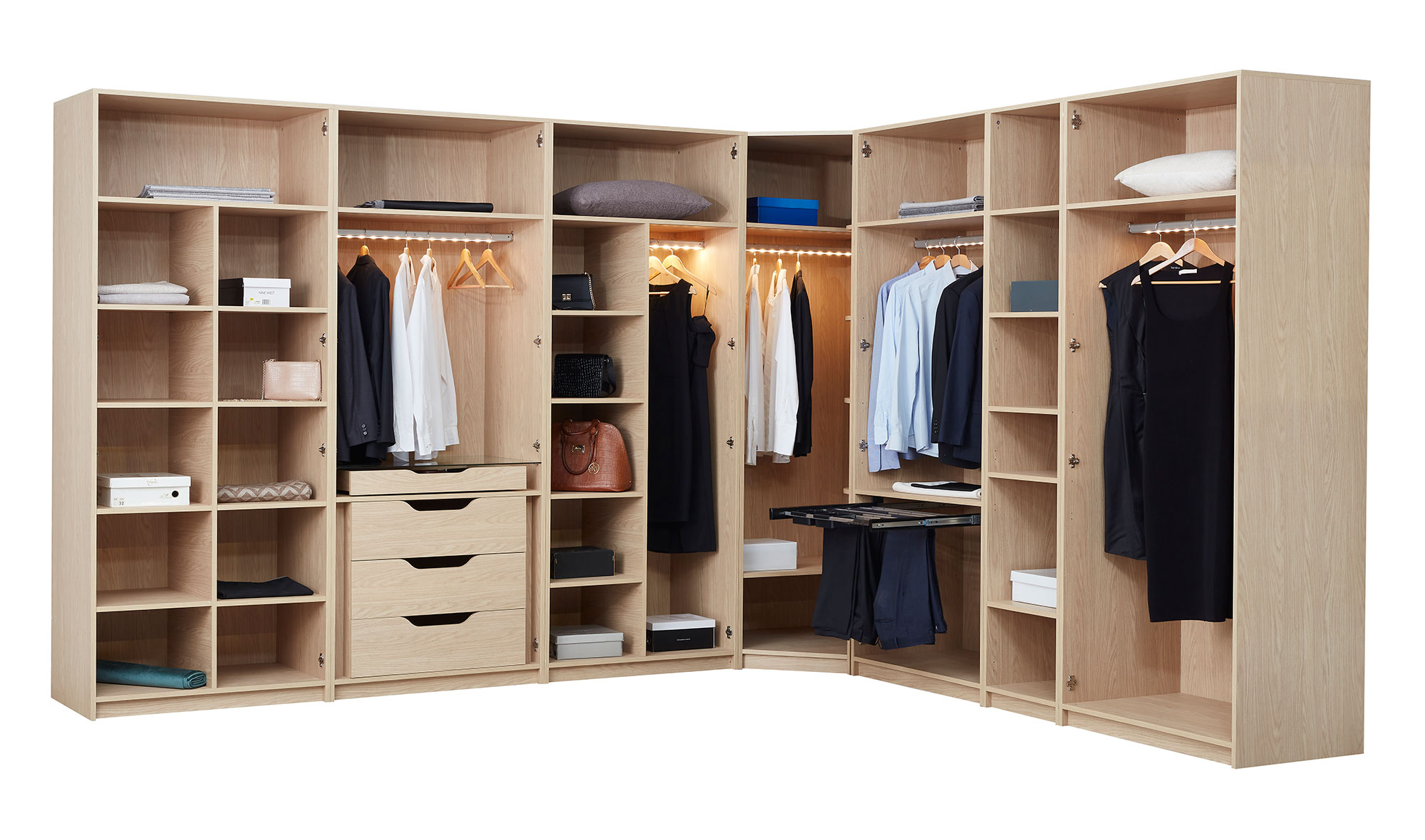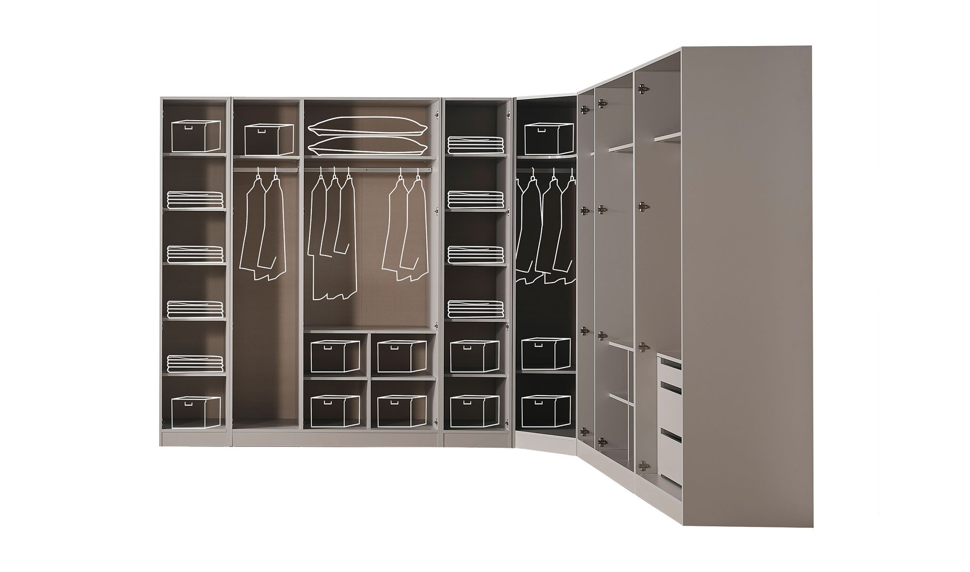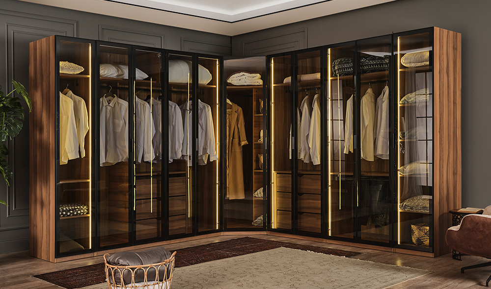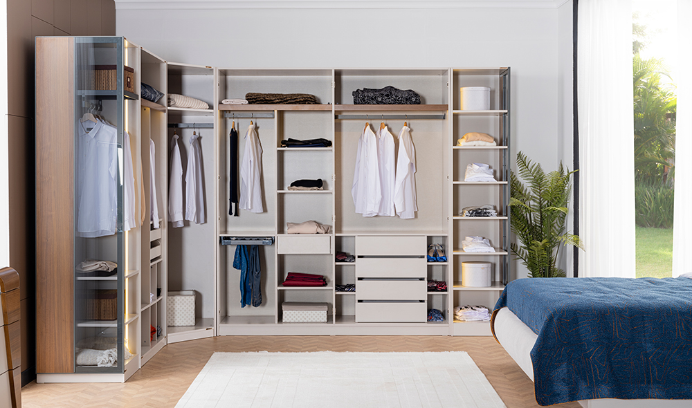 - مفتوح: لا يحتوي على أبواب، مما يعطي إحساسًا بالمساحة ويجعل الوصول للملابس أسهل.