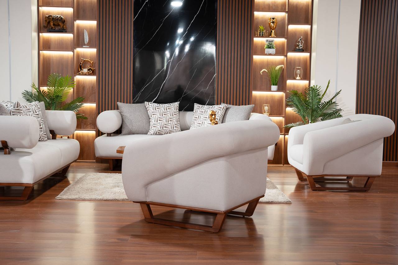 طقم كنب سيلا يجمع بين الفخامة والراحة، مكوَّن من كنبة ثلاثية + كنبة ثنائية + عدد ٢ كرسي . مصنوع من خشب الزان الأحمر المعروف بصلابته، ومزوّد بإسفنج سوفت عالي الجودة يمنحك الراحة ويدوم معك لسنوات. التنجيد من قماش كتان معالج ضد السوائل والاتساخ، ليحافظ على مظهره الأنيق بسهولة في الاستخدام اليومي.